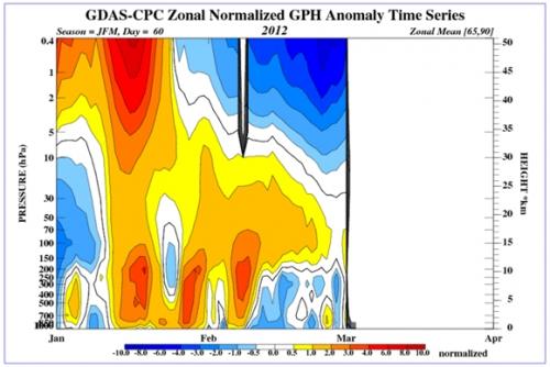Come detto negli aggiornamenti precedenti, intorno alla seconda metà di Marzo terminerà il feedback dell’ESE. Il mese di Aprile dovrebbe vedere un VPS molto forte ed una stratosfera ancora decisamente fredda; tale situazione la ritroveremo in maniera simile pure a livello troposferico, ove permarranno condizioni di zonalità accentuata ed un anticiclone azzorriano ancora arroccato sull’Europa occidentale e Mediterraneo.