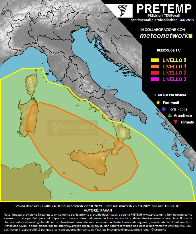 Un livello 1 per pioggia, grandine e trombe marine è stato emesso per la Liguria, il Mar Ligure e per la Toscana. Un livello 0 varrà per vento, il quale risulterà più sostenuto in serata con l’entrata del maestrale da Ovest.