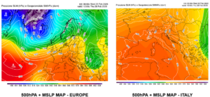 A fare da contraltare a questa cupola anticiclonica, troviamo una profonda e vasta saccatura depressionaria centrata nei pressi dell’Islanda. Al suolo, questa struttura si traduce in un campo barico caratterizzato da isobare molto ravvicinate, indice di gradienti pressori decisamente marcati. La stretta vicinanza tra il promontorio stabilizzante e il sistema depressorio nord-atlantico genera una tesa ventilazione dai quadranti sud-occidentali, che interessa in particolar modo le Isole Britanniche e le regioni del Nord Europa poste lungo la linea di confine tra le due diverse masse d’aria.